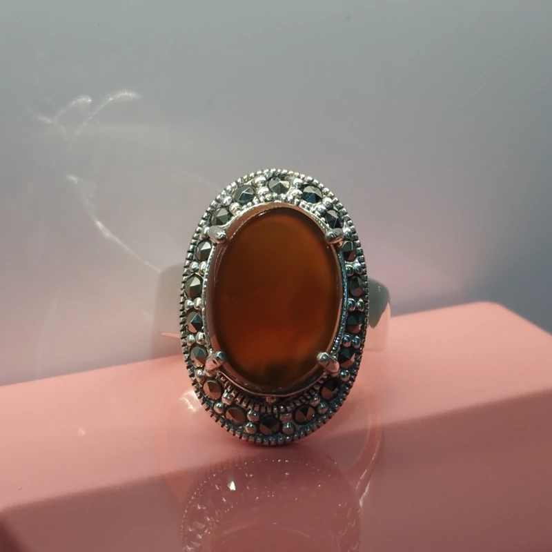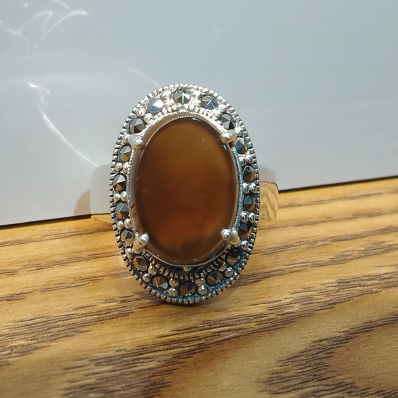انگشتر نقره زنانه با نگین مارکازیت ،عقیق خرمایی صددرصد طبیعی با ضمانت مکتوب اصالت،برند دُرسیم
