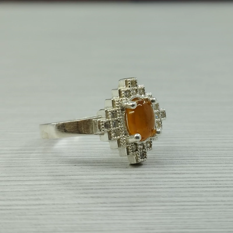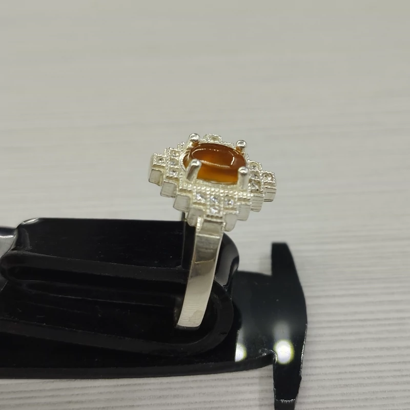 انگشتر نقره زنانه عقیق پرتقالی شن دار و زیبا اصل و معدنی