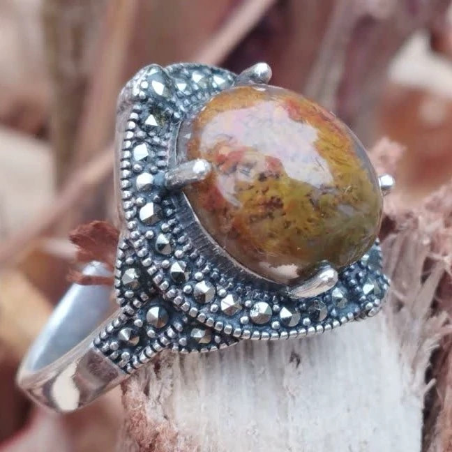 🟡 #انگشتر #زنانه 💎 #عقیقِ شجر پاییزه ✅ فرم : #نقره عیار ۹۲۵ 📏 سایز: ۵۸ 🟣 کلیه عقیق های مجموعه با #ضمانت_مکتوب ارایه میگردد ( ضمانت میکنیم که #جنس ، #رنگ و #طرح درون همه عقیق ها #طبیعی و #تراش_بدون_واسطه مجموعه تولیدی دُرسیم از سنگهای خام معادن جنوب خراسان بوده و #وارداتی،#رنگ_شده یا #مصنوعی نمیباشد)