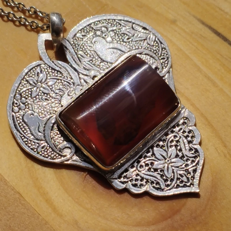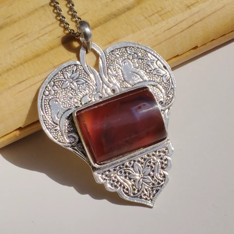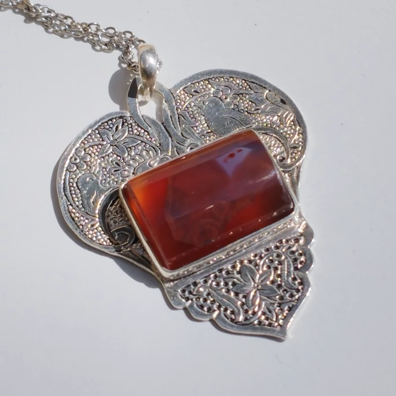 فرم نقره عیار ۹۲۵ قلمزنی طرح گل و مرغ عقیق سرخ طبیعی و معدنی عقیق صددرصد طبیعی و معدنی میباشد در صورت تمایل ضمانت نامه مکتوب برای اصالت جنس و رنگ عقیق صادر میشود تضمین میکنیم که عقیق وارداتی،ازمایشگاهی،شیشه و .... نبوده بلکه عقیق طبیعی و معدنی است و رنگ آن نیز طبیعی است(مانند بسیاری از عقیق های بازار رنگ نگین تزریقی نیست) تراش نگین توسط هنرمندان مجموعه تولیدی درسیم انجام گرفته است