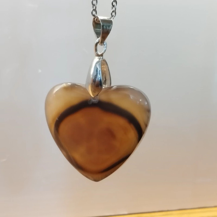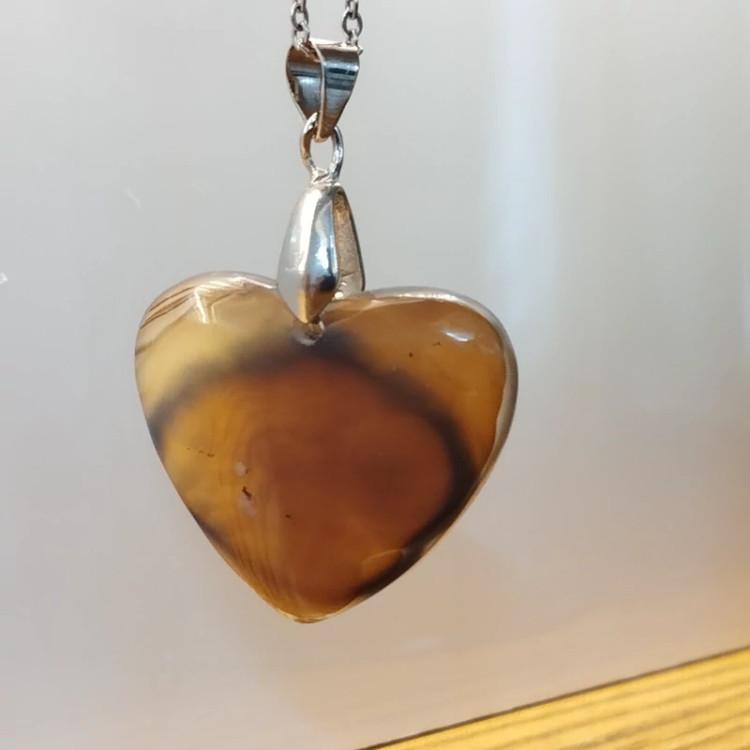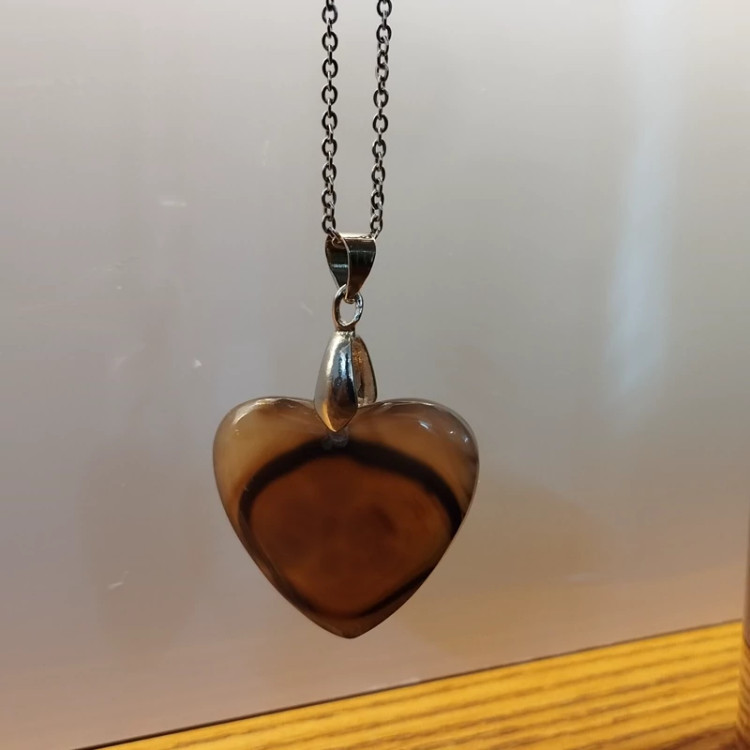 آویز زنانه با چنگ استیل ،عقیق خرمایی با هاله مشکی،تراش قلب حرفه ای،صددرصد طبیعی با ضمانت متولد اصالت.برند دُرسیم