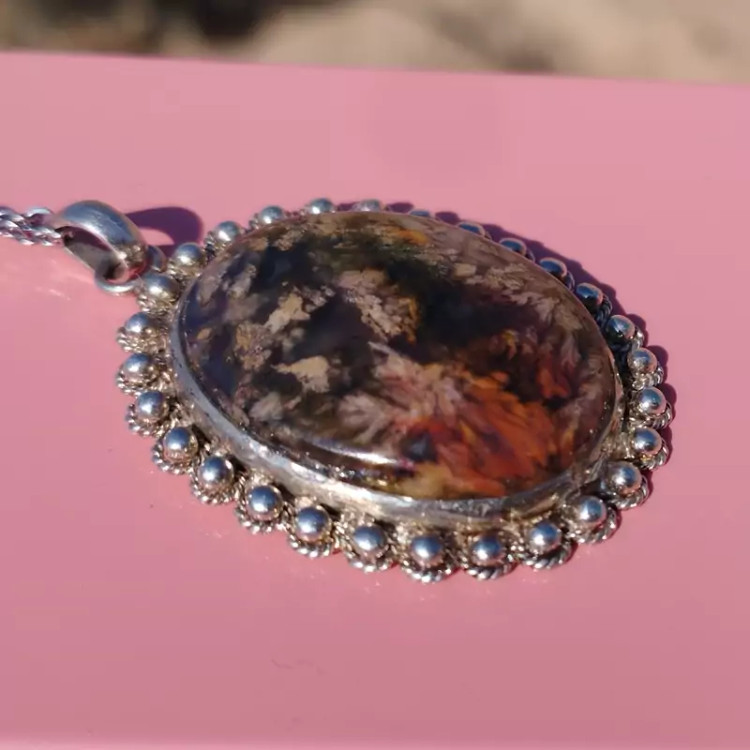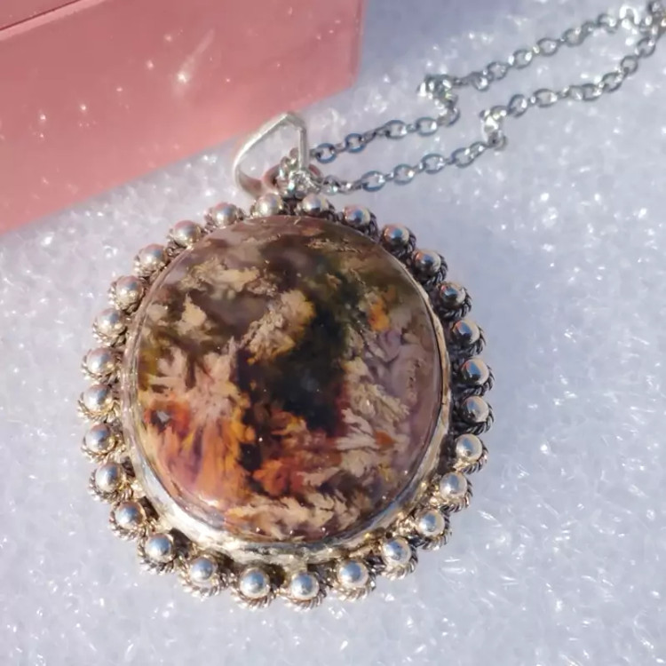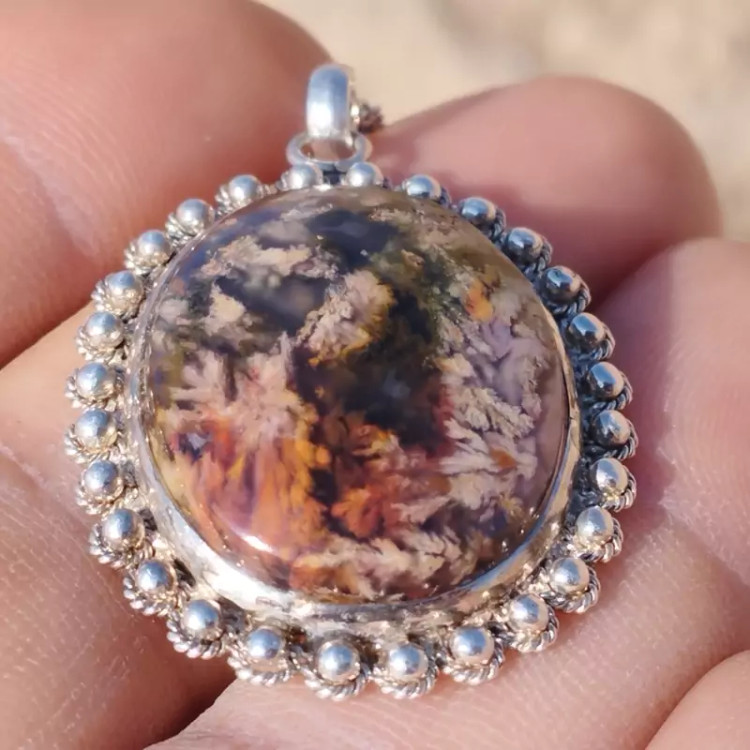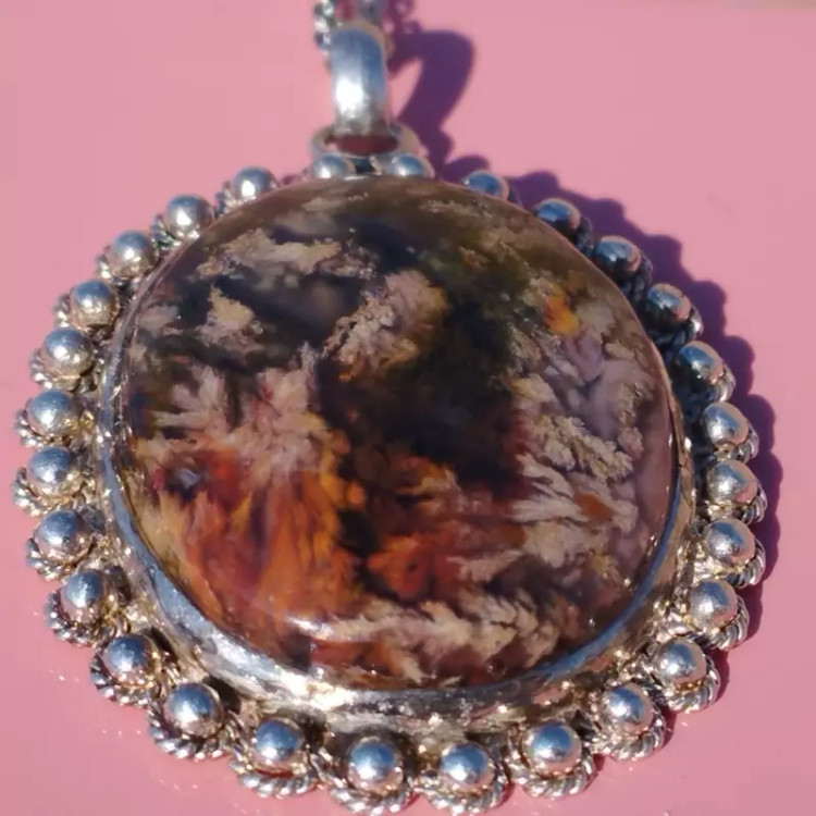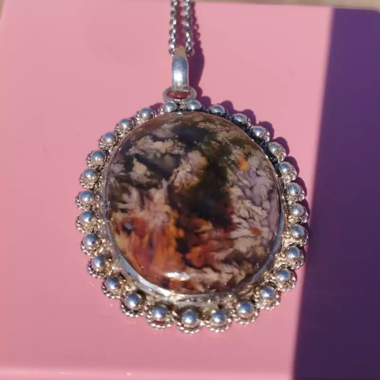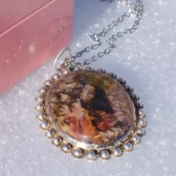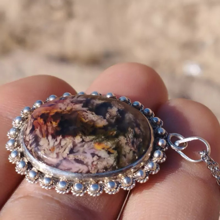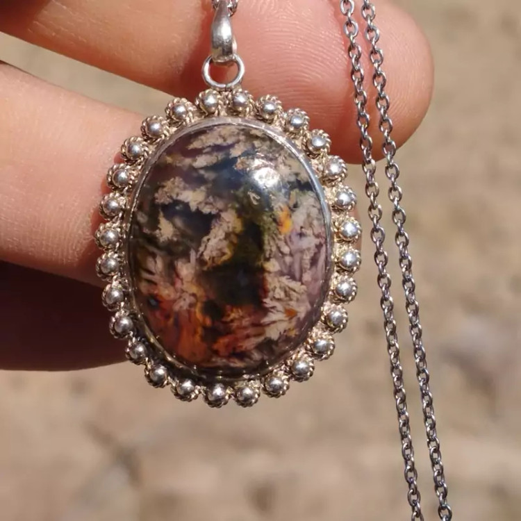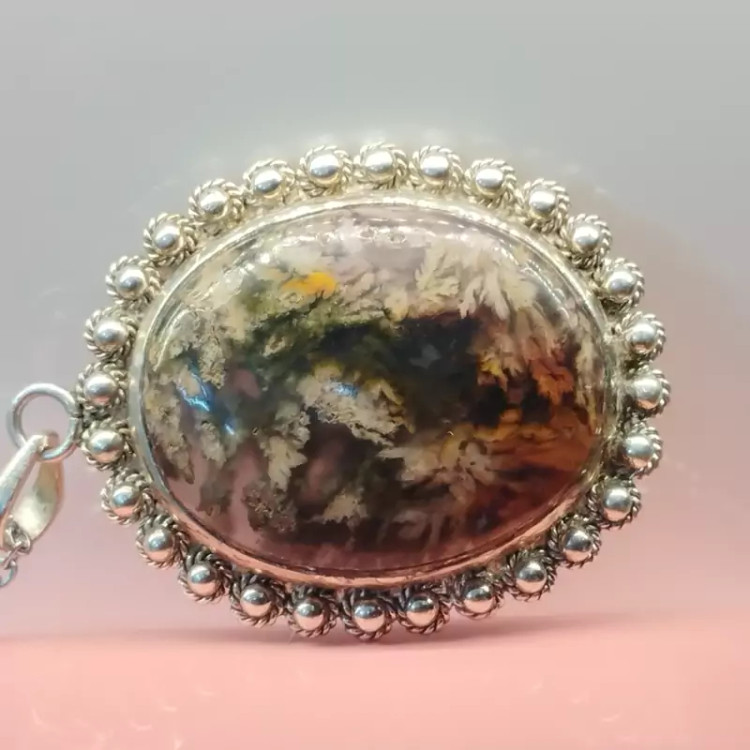 گردن آویز نقره دست ساز زنانه با عقیق شجر خوشه ای چند رنگ صددرصد طبیعی با ضمانت مکتوب اصالت،برند دُرسبم