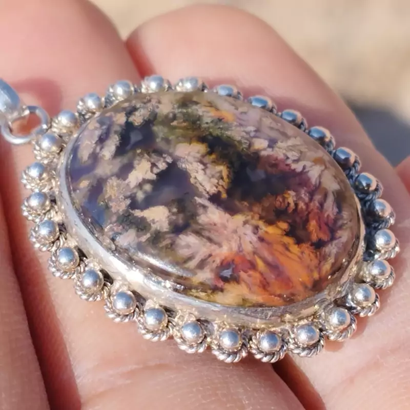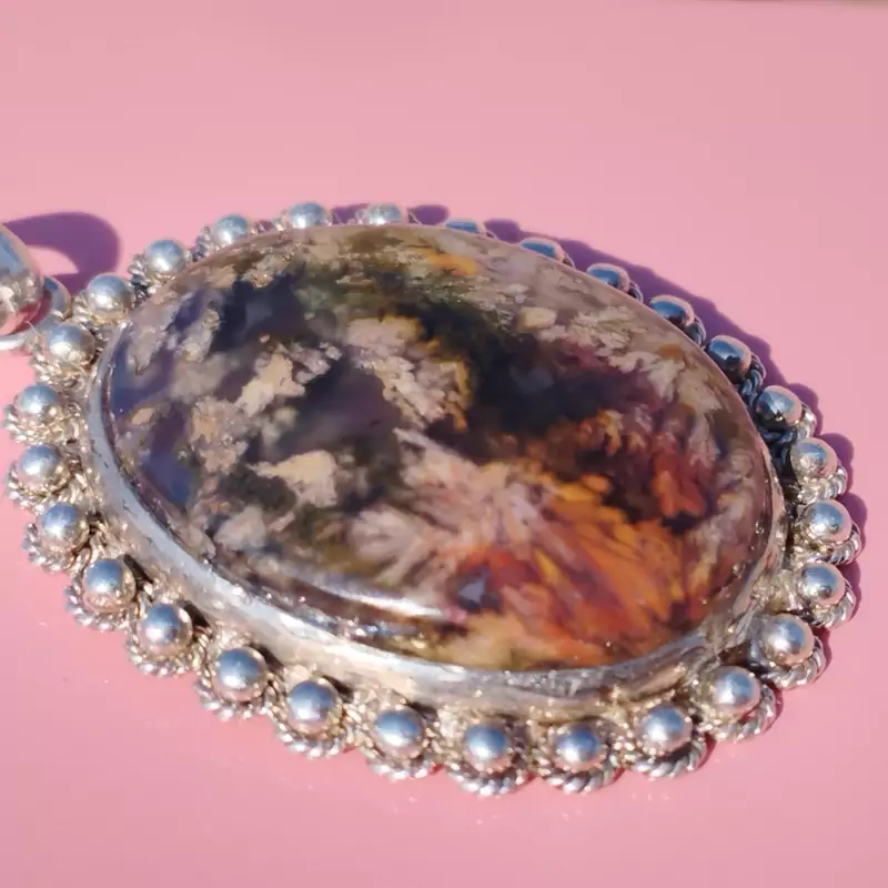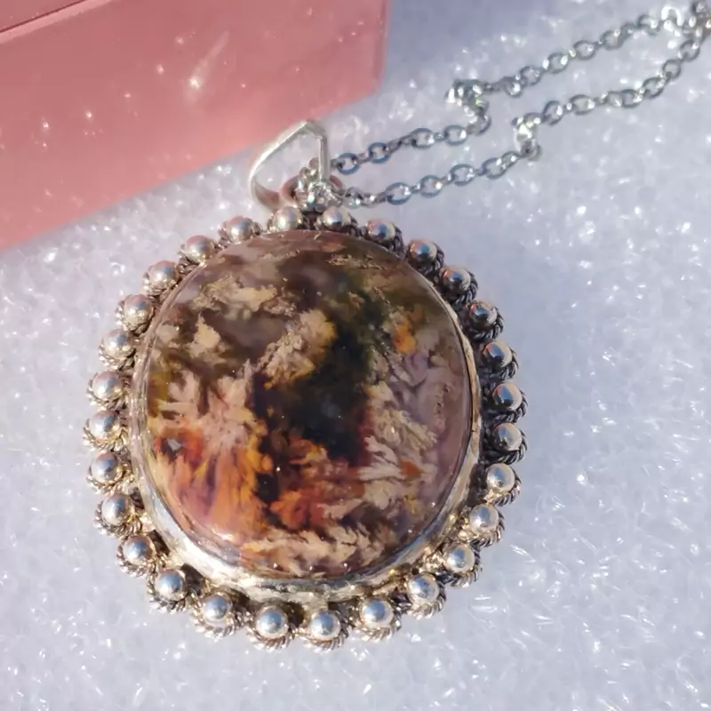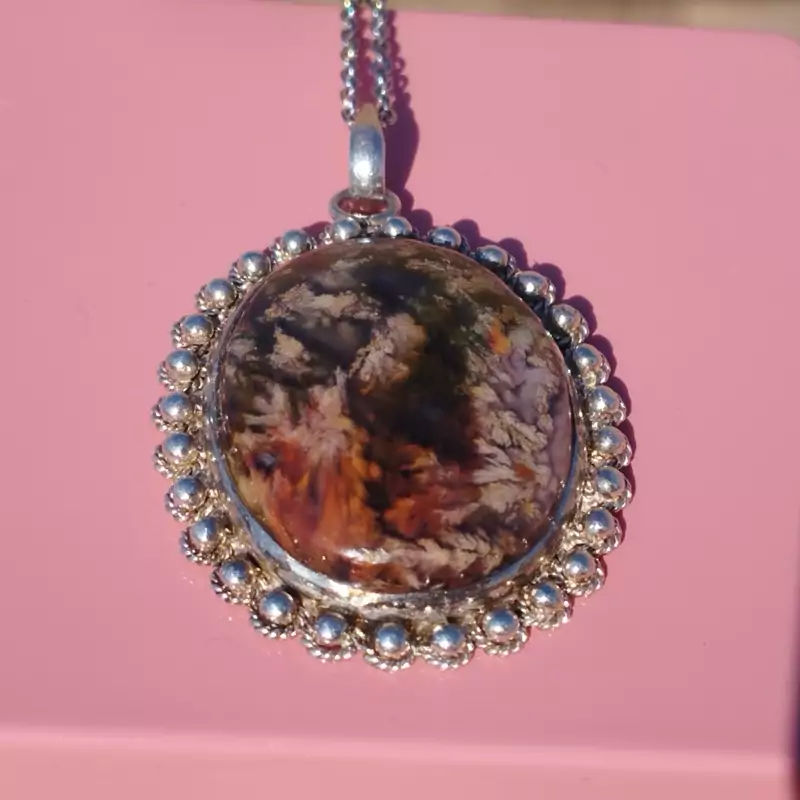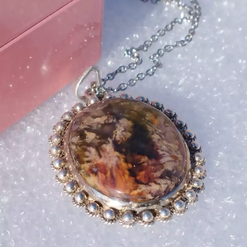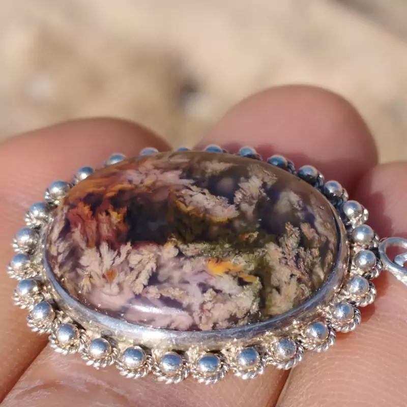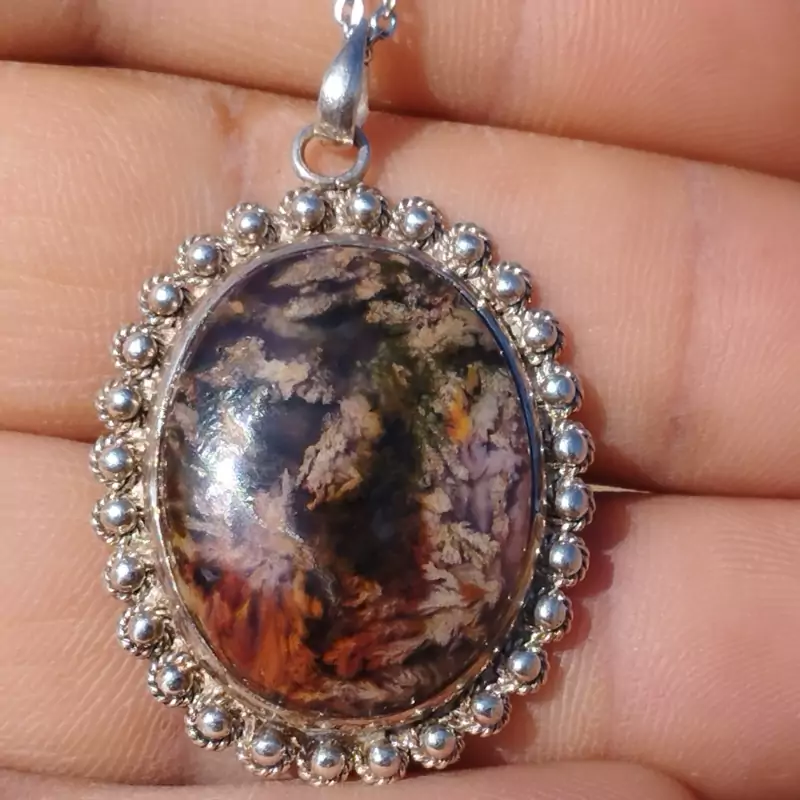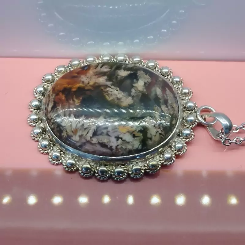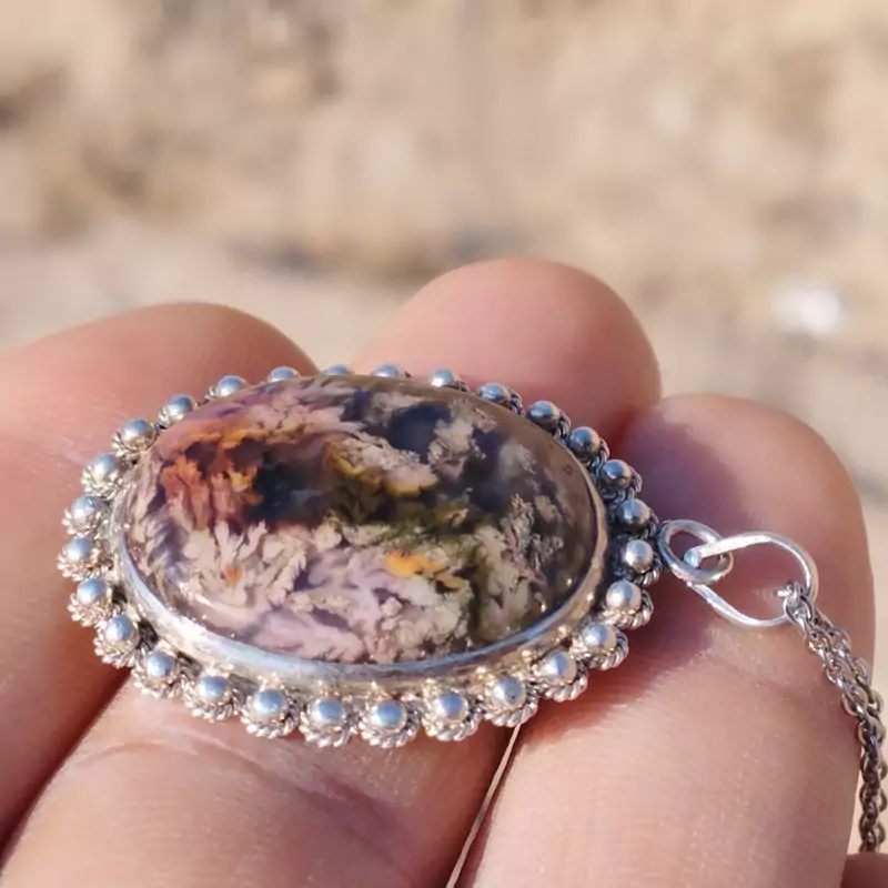 گردن آویز نقره دست ساز زنانه با عقیق شجر خوشه ای چند رنگ صددرصد طبیعی با ضمانت مکتوب اصالت،برند دُرسبم