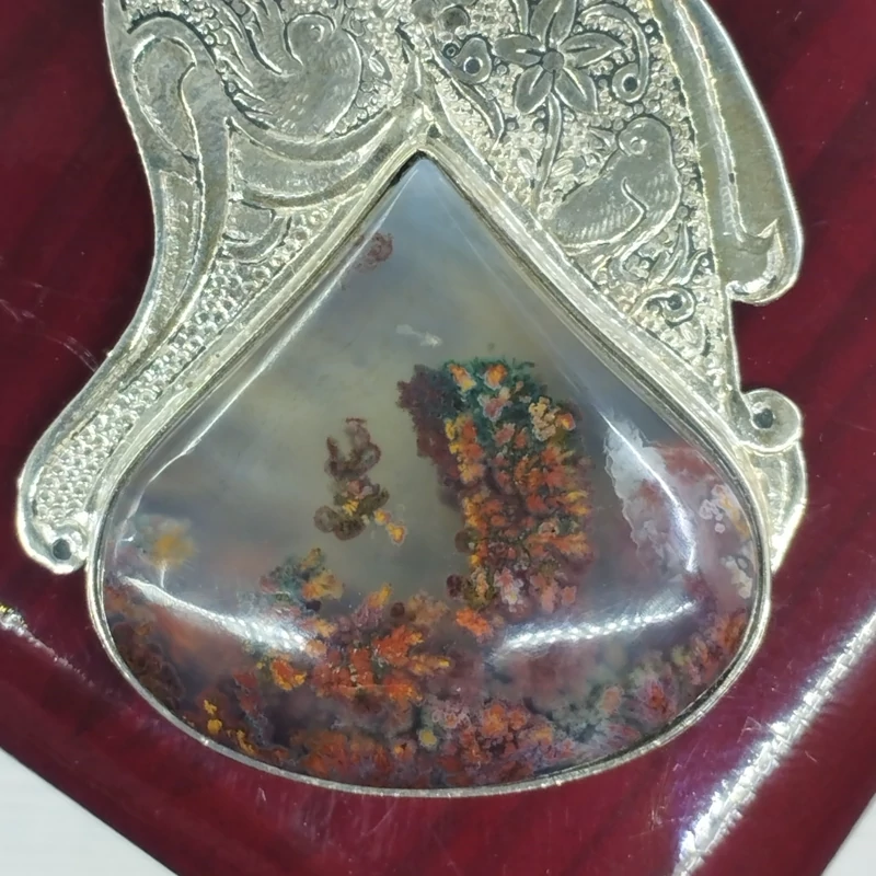 فرم نقره عیار استاندار ۹۲۵ قلمزنی طرح گل و مرغ عقیق شجر زرشکی معدنی،تراش فانتزی عقیق صددرصد طبیعی و معدنی میباشد در صورت تمایل ضمانت نامه مکتوب برای اصالت جنس و رنگ عقیق صادر میشود تضمین میکنیم که عقیق وارداتی،ازمایشگاهی،شیشه و .... نبوده بلکه عقیق طبیعی و معدنی است و رنگ آن نیز طبیعی است(مانند بسیاری از عقیق های بازار رنگ نگین تزریقی نیست) تراش نگین توسط هنرمندان مجموعه تولیدی درسیم انجام گرفته است