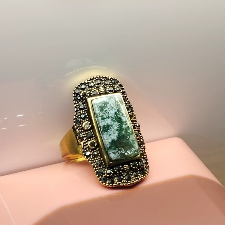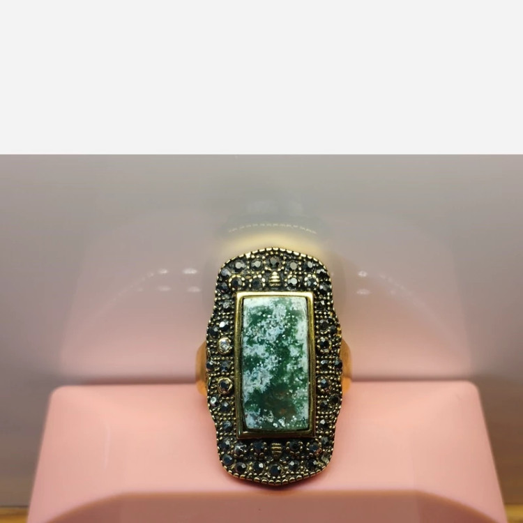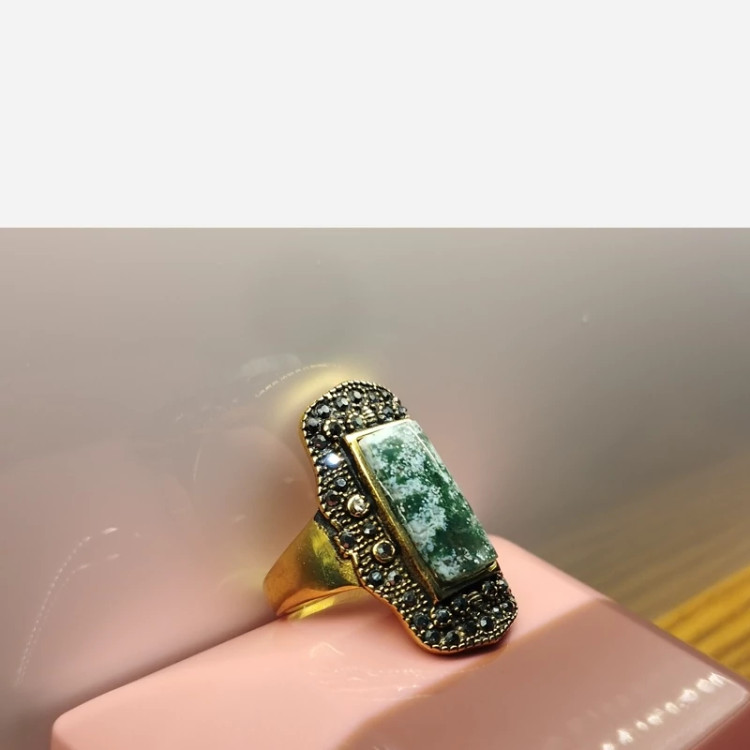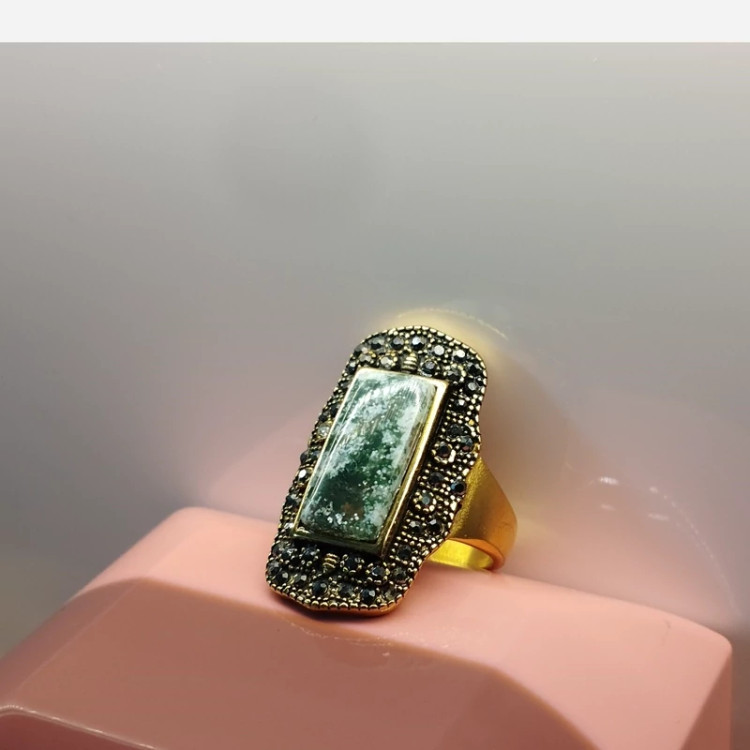انگشتر استیل رنگ ثابت زنانه عقیق جاسپر سبز جاسپر منظره ای صددرصد طبیعی با ضمانت مکتوب اصالت.برند دُرسیم