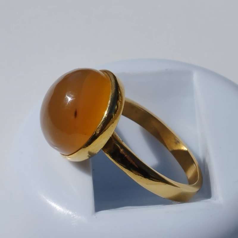 انگشتر زنانه استیل رنگ ثابت عقیق زرد شرف الشمس طبیعی