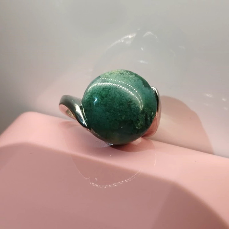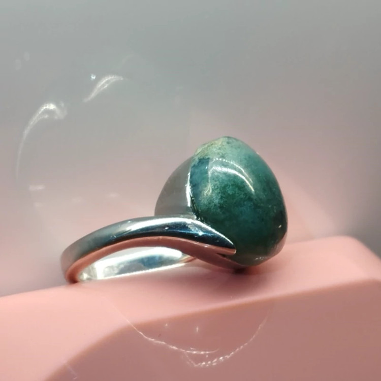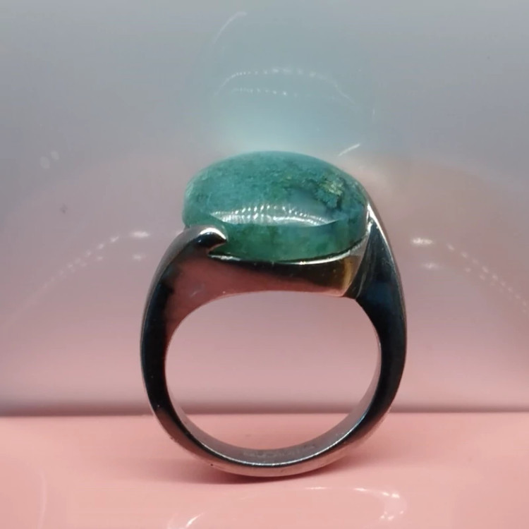انگشتر زنانه استیل رنگ ثابت عقیق جاسپر سبز فیروزه ای صددرصد طبیعی با ضمانت مکتوب اصالت.برند دُرسیم