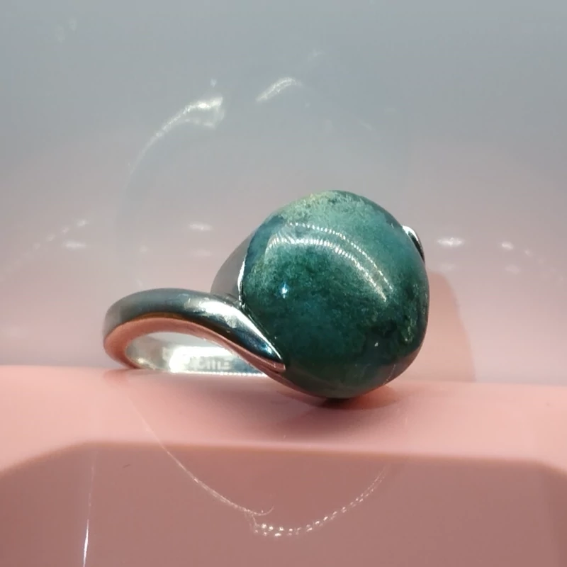 انگشتر زنانه استیل رنگ ثابت عقیق جاسپر سبز فیروزه ای صددرصد طبیعی با ضمانت مکتوب اصالت.برند دُرسیم
