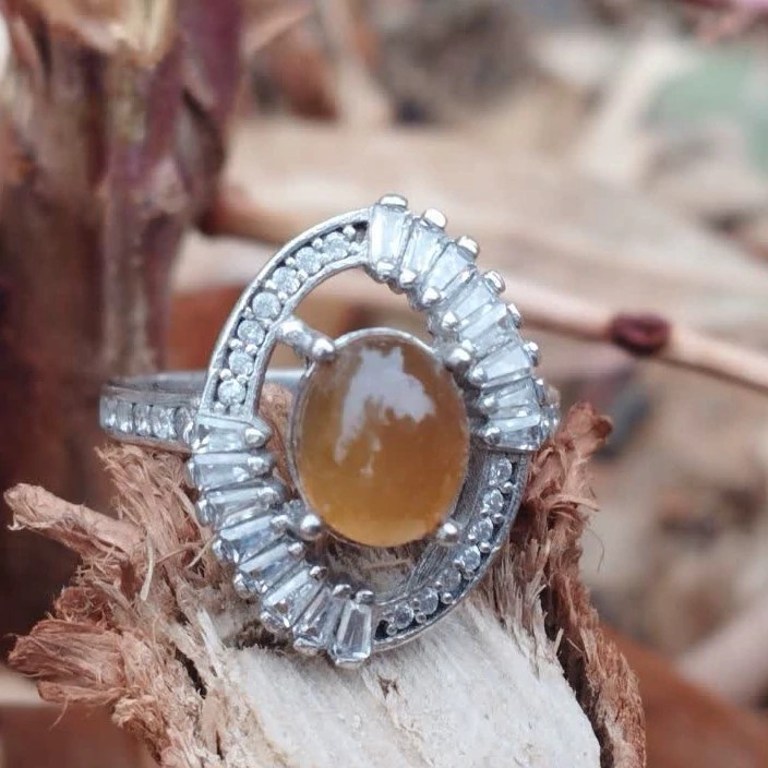 انگشتر نقره زنانه با نگین اتمی و آبکاری رادیوم و عقیق زرد (شرف الشمس) صددرصد طبیعی با ضمانت مکتوب اصالت .برند دُرسیم