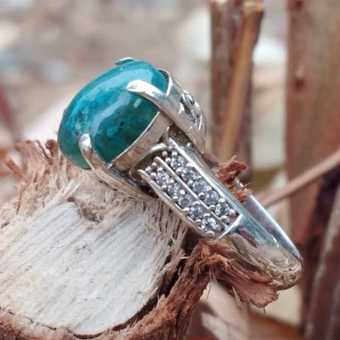 انگشتر نقره زنانه با عقیق آبی فیروزه ای بسیار کمیاب صددرصد طبیعی با ضمانت مکتوب اصالت .برند دُرسیم