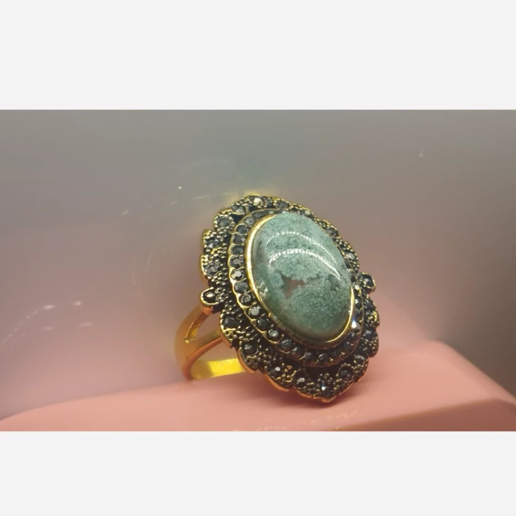 انگشتر استیل رنگ ثابت زنانه عقیق جاسپر سبز خزه ای صددرصد طبیعی با ضمانت مکتوب اصالت.برند دُرسیم