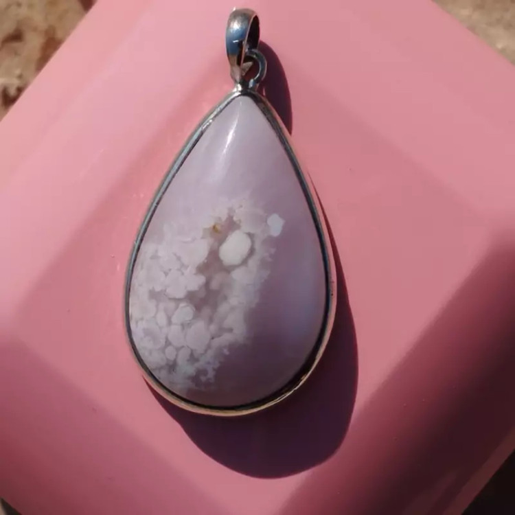 گردن آویز نقره زنانه عقیق گل بهی بسیار زیبا صددرصد طبیعی با ضمانت مکتوب اصالت،برند دُرسیم