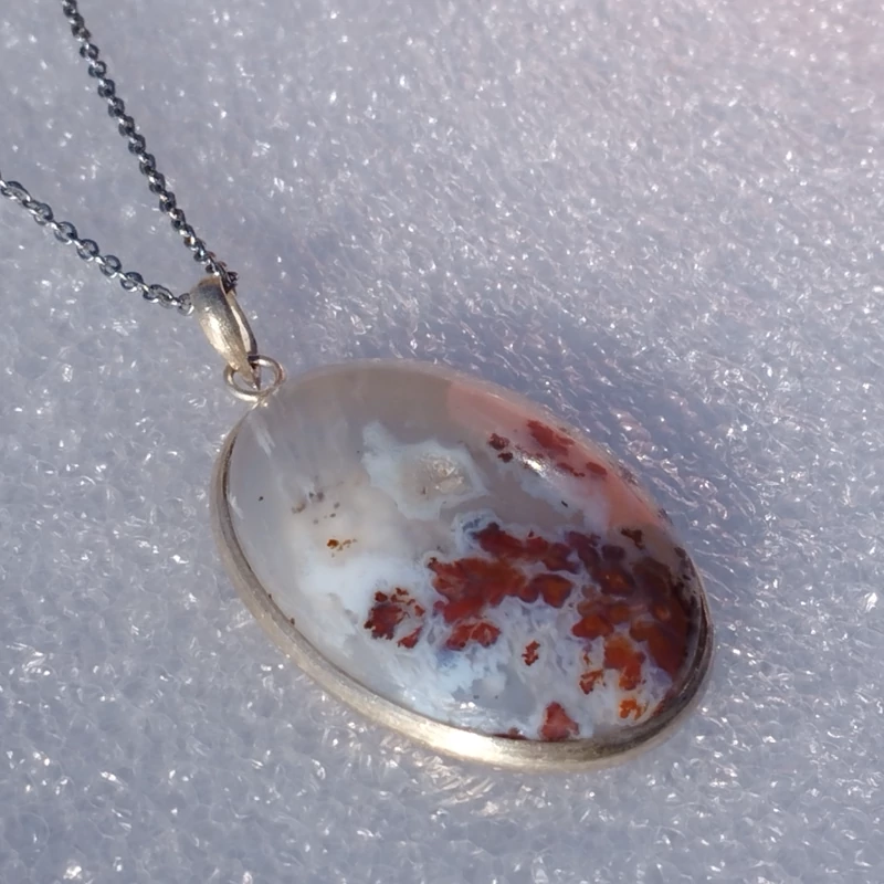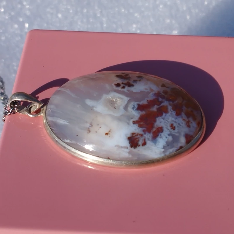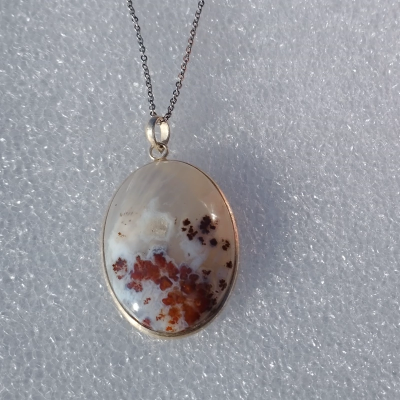 گردن آویز نقره زنانه مردانه عقیق منظره ای صددرصد طبیعی با ضمانت مکتوب اصالت،برند دُرسیم