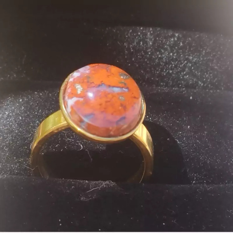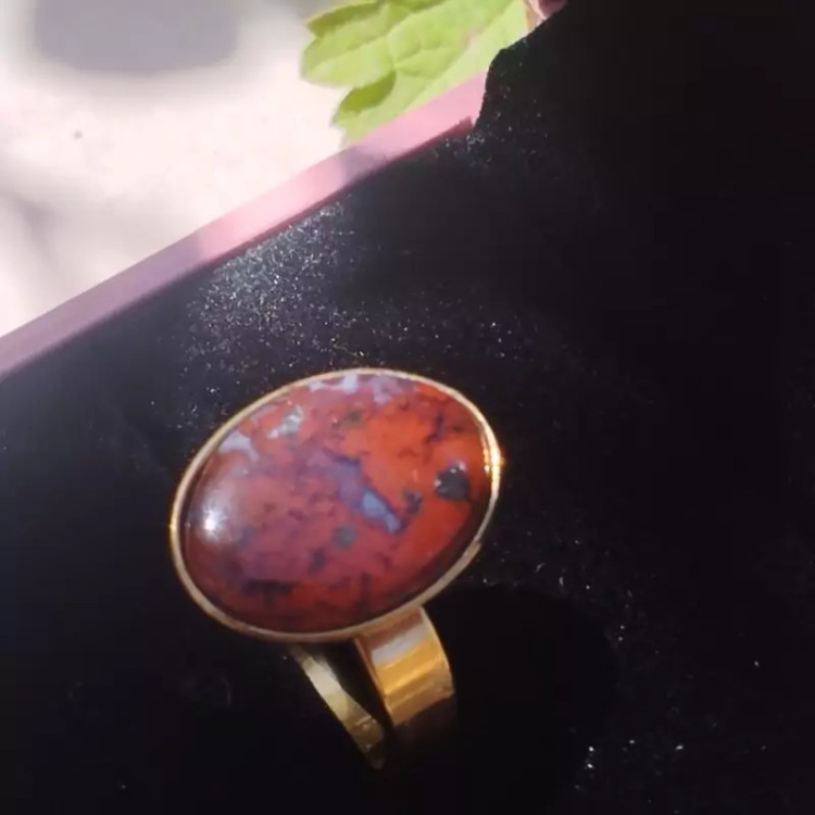 انگشتر استیل رنگ ثابت زنانه عقیق سرخ جاسپر صددرصد طبیعی با ضمانت مکتوب اصالت برند دُرسیم