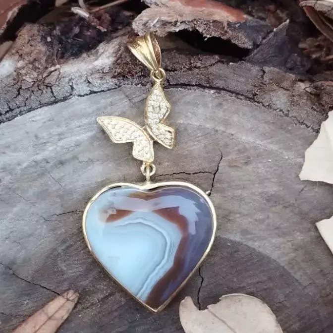 آویز نقره زنانه با آبکاری زرد.طرح پروانه.خاص و بی نظیر.عقیق سلیمانی بسیار خوشرنگ و طبیعی با ضمانت مکتوب اصالت.برند دُرسی