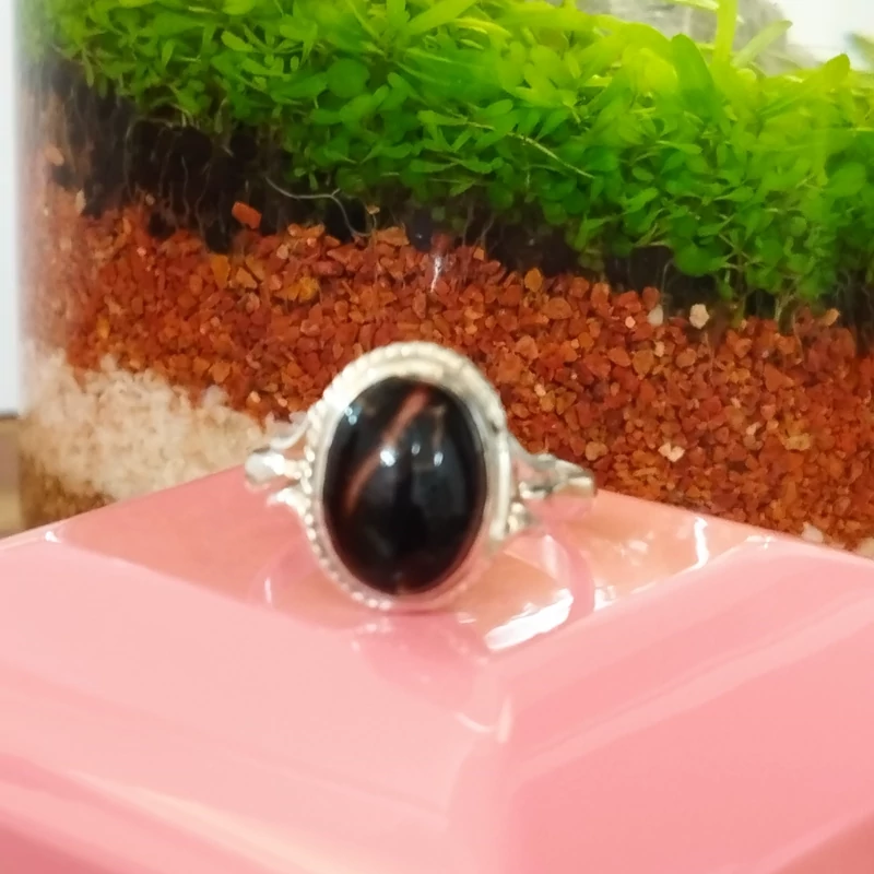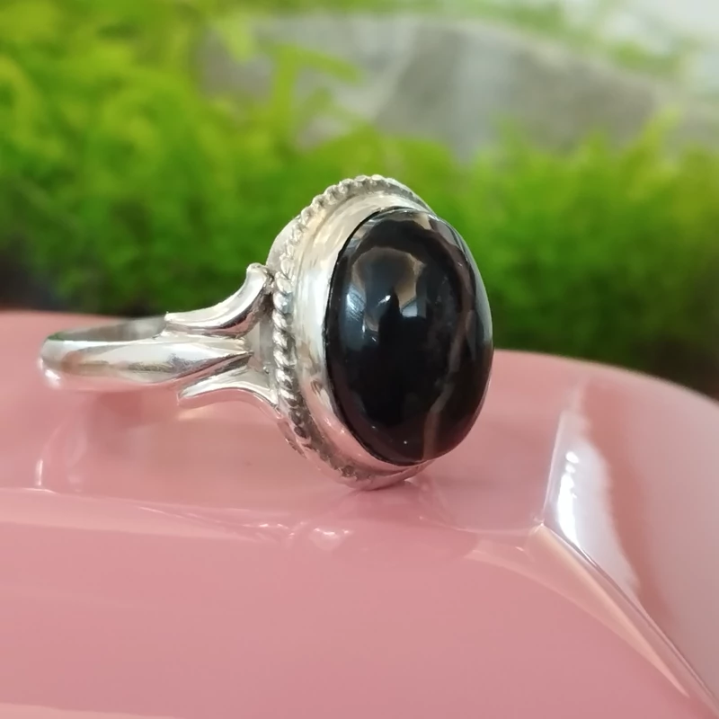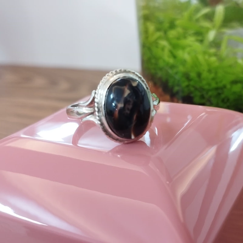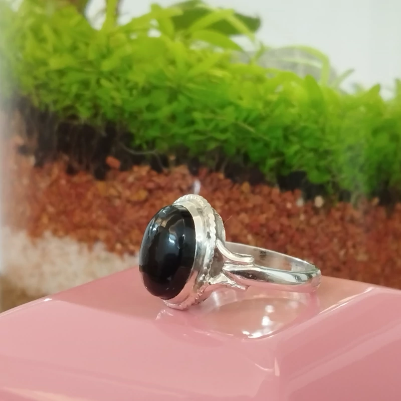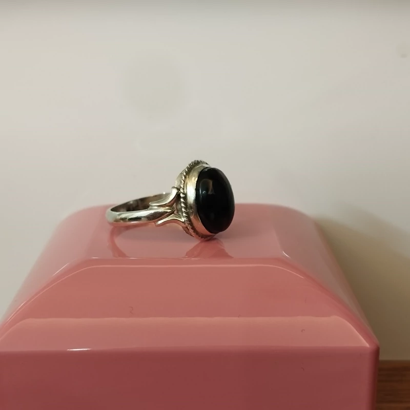 انگشتر نقره زنانه عقیق مشکی بسیار زیبا. صددرصد طبیعی با ضمانت مکتوب اصالت،برند دُرسیم