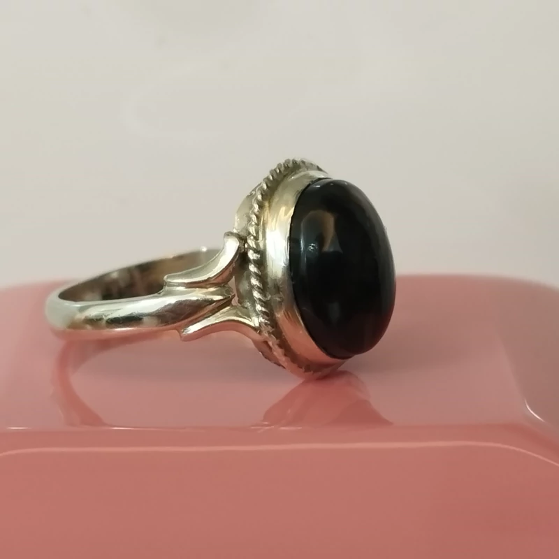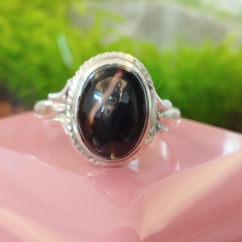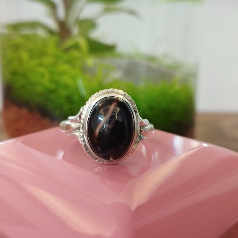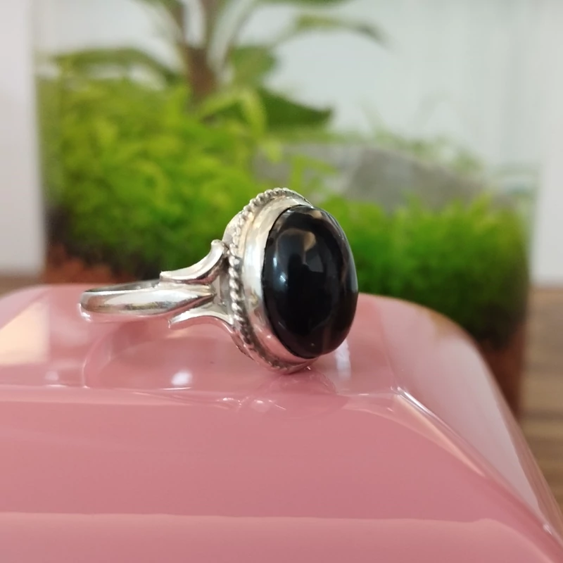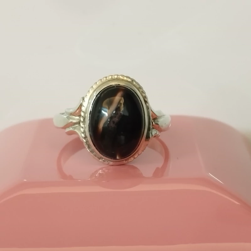 انگشتر نقره زنانه عقیق مشکی بسیار زیبا. صددرصد طبیعی با ضمانت مکتوب اصالت،برند دُرسیم