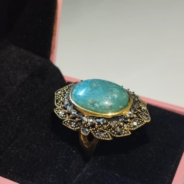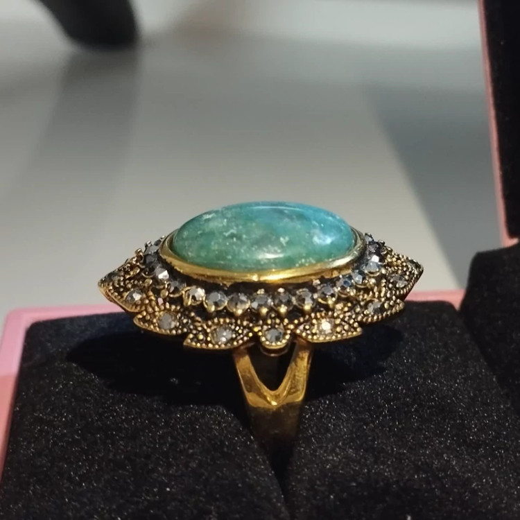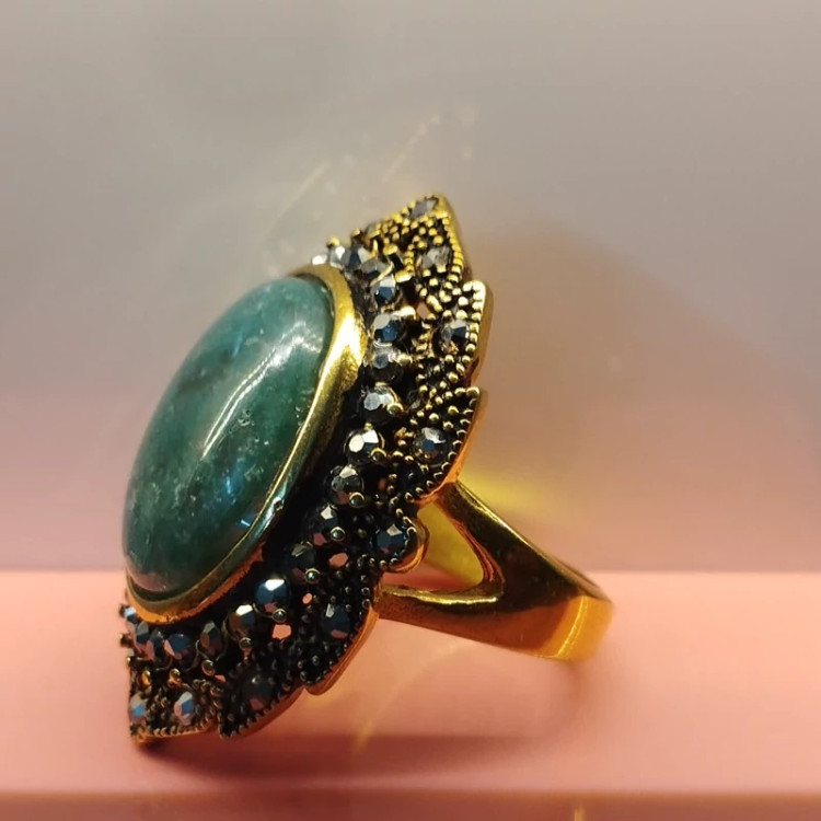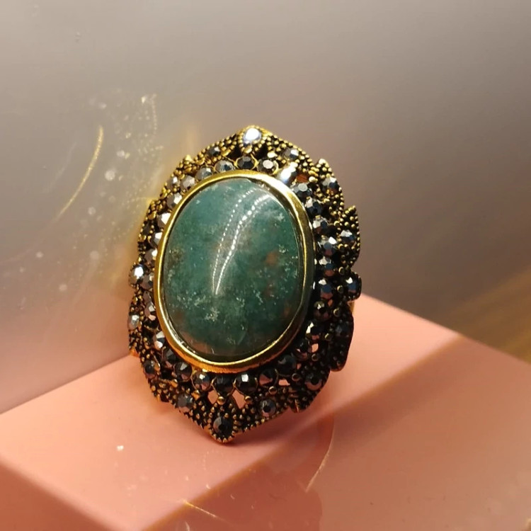 انگشتر استیل رنگ ثابت زنانه عقیق سبز جاسپر فیروزه ای صددرصد طبیعی با ضمانت مکتوب اصالت .برند دُرسیم