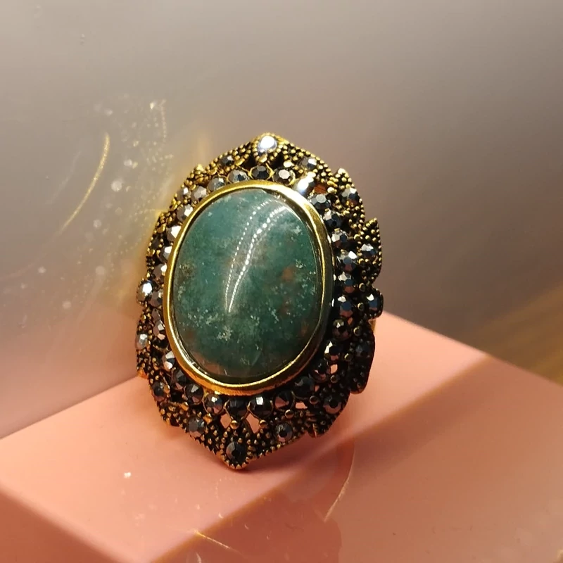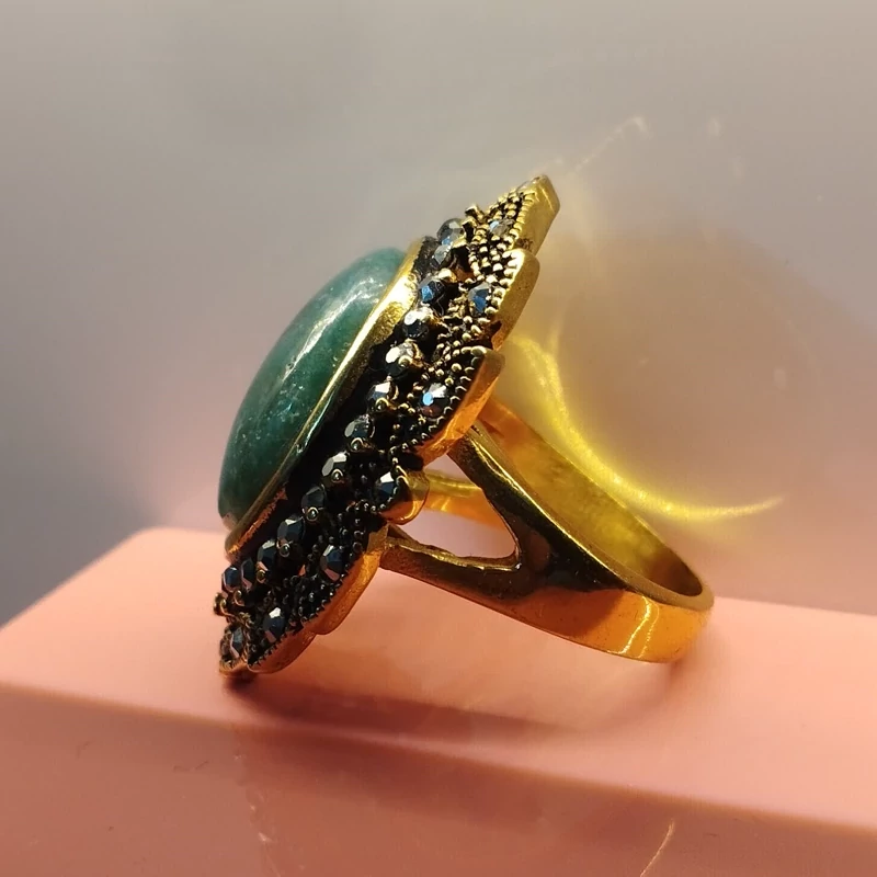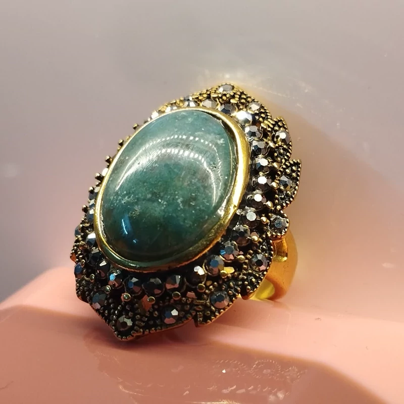 انگشتر استیل رنگ ثابت زنانه عقیق سبز جاسپر فیروزه ای صددرصد طبیعی با ضمانت مکتوب اصالت .برند دُرسیم