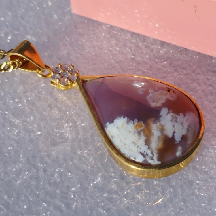 گردن آویز نقره زنانه با آبکاری ط ل ا و عقیق فانتزی شجر در زمینه سوسنی صددرصد طبیعی با ضمانت مکتوب اصالت ، برند دُرسیم