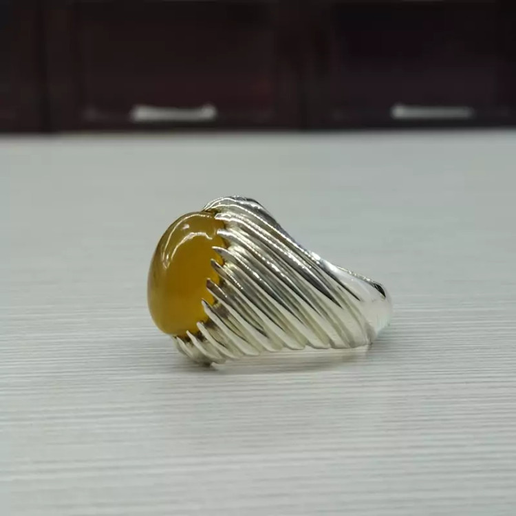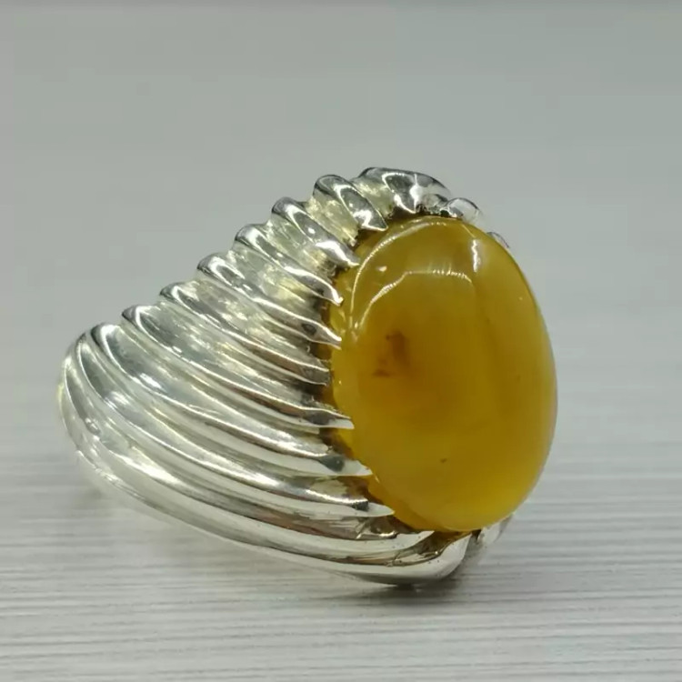 انگشتر نقره مردانه عقیق زرد عسلی صددرصد طبیعی و معدنی با ضمانت مکتوب اصالت جنس و رنگ نگین