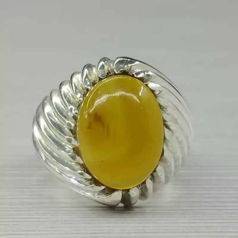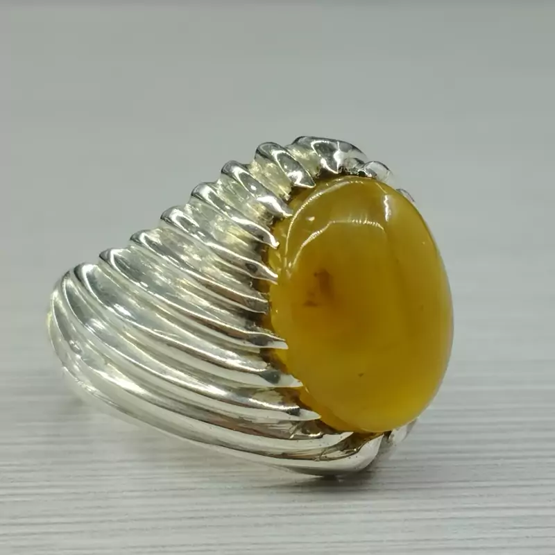 انگشتر نقره مردانه عقیق زرد عسلی صددرصد طبیعی و معدنی با ضمانت مکتوب اصالت جنس و رنگ نگین