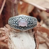 انگشتر نقره زنانه با نگین های مارکازیت و عقیق سوسنی.ضمانت مکتوب اصالت.برند دُرسیم