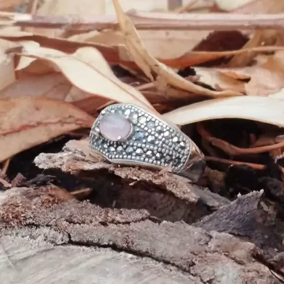 انگشتر نقره زنانه با نگین های مارکازیت و عقیق سوسنی.ضمانت مکتوب اصالت.برند دُرسیم