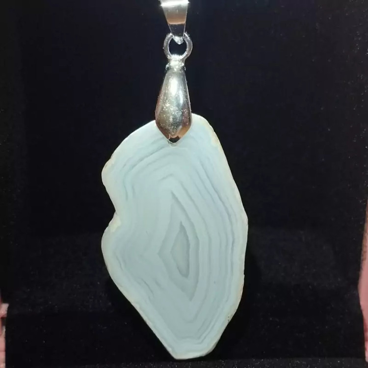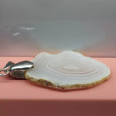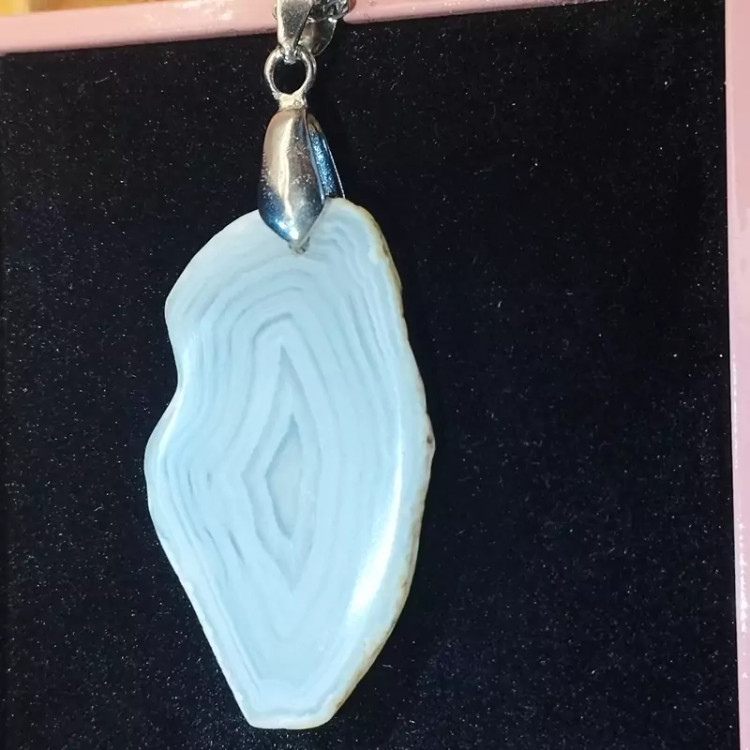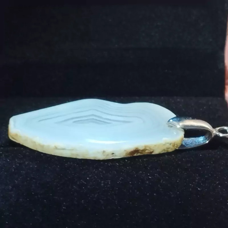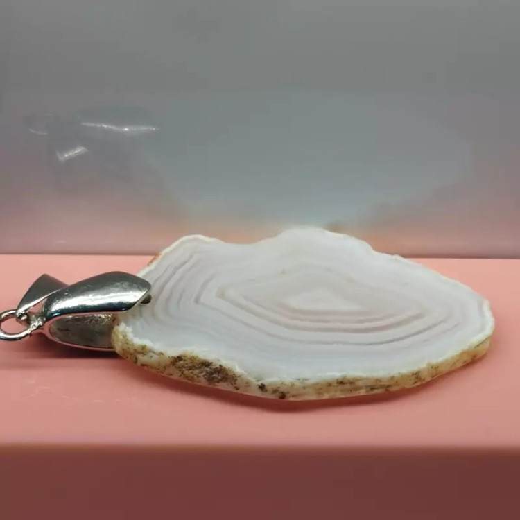 گردن آویز استیل زنانه مردانه عقیق سلیمانی سفید صددرصد طبیعی و معدنی