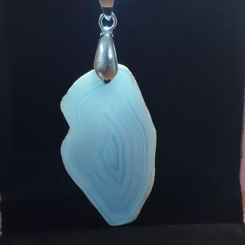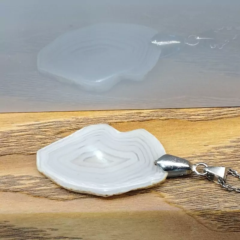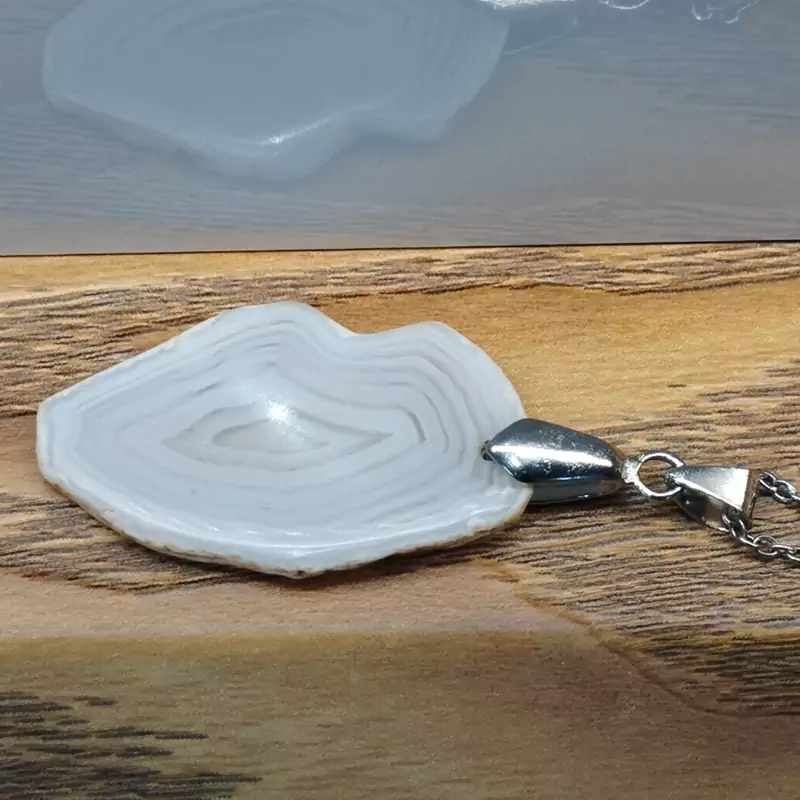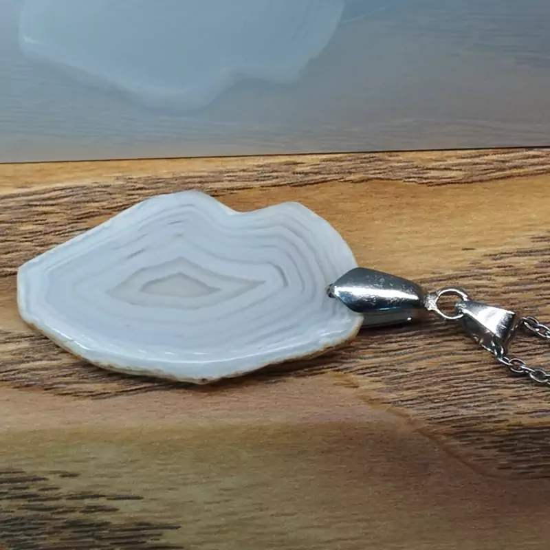 گردن آویز استیل زنانه مردانه عقیق سلیمانی سفید صددرصد طبیعی و معدنی